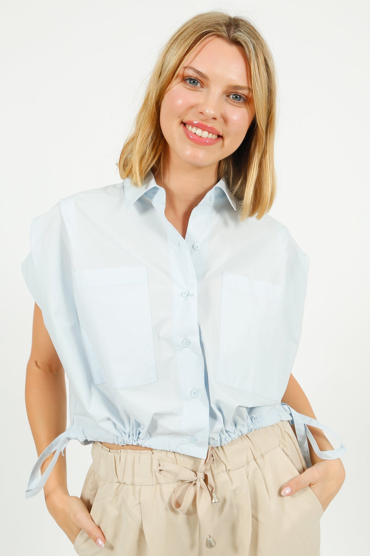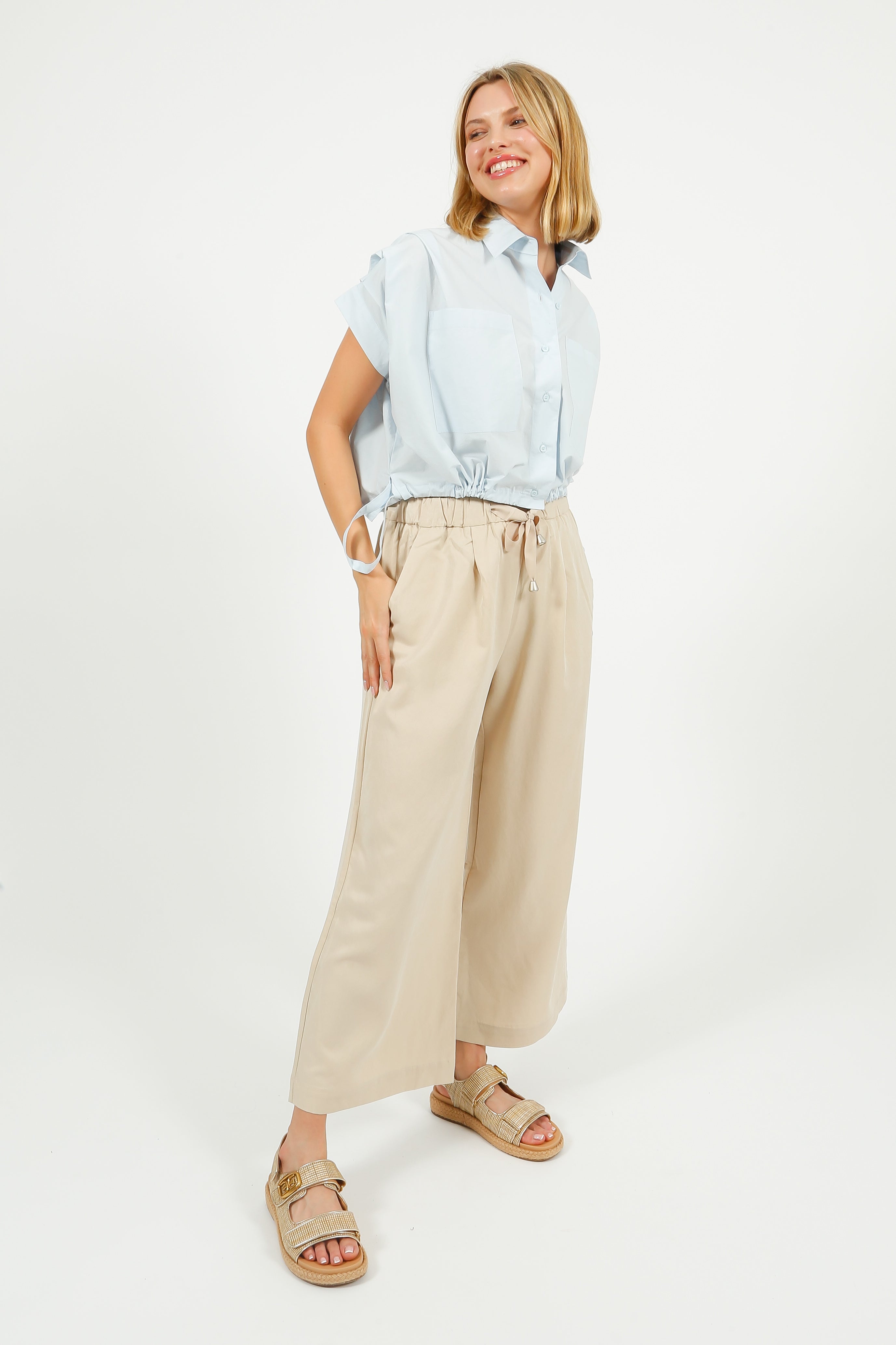 EP BL3406 Gathered Shirt Blouse in Sky